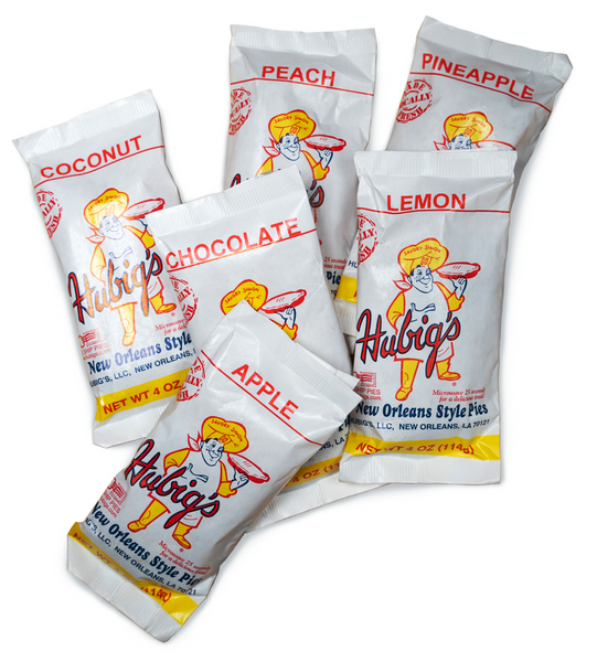 Yes! Hubig’s pies are sold at grocery stores, convenience stores, hardware stores, and marinas among other outlets in and near New Orleans. See a Google map of stores that usually carry Hubig's here. Hubig's are also available for nationwide shipping at Hubigs.com and Goldbelly.com.